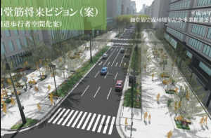 御堂筋で「全面歩道化」構想、まず側道の車両排除
